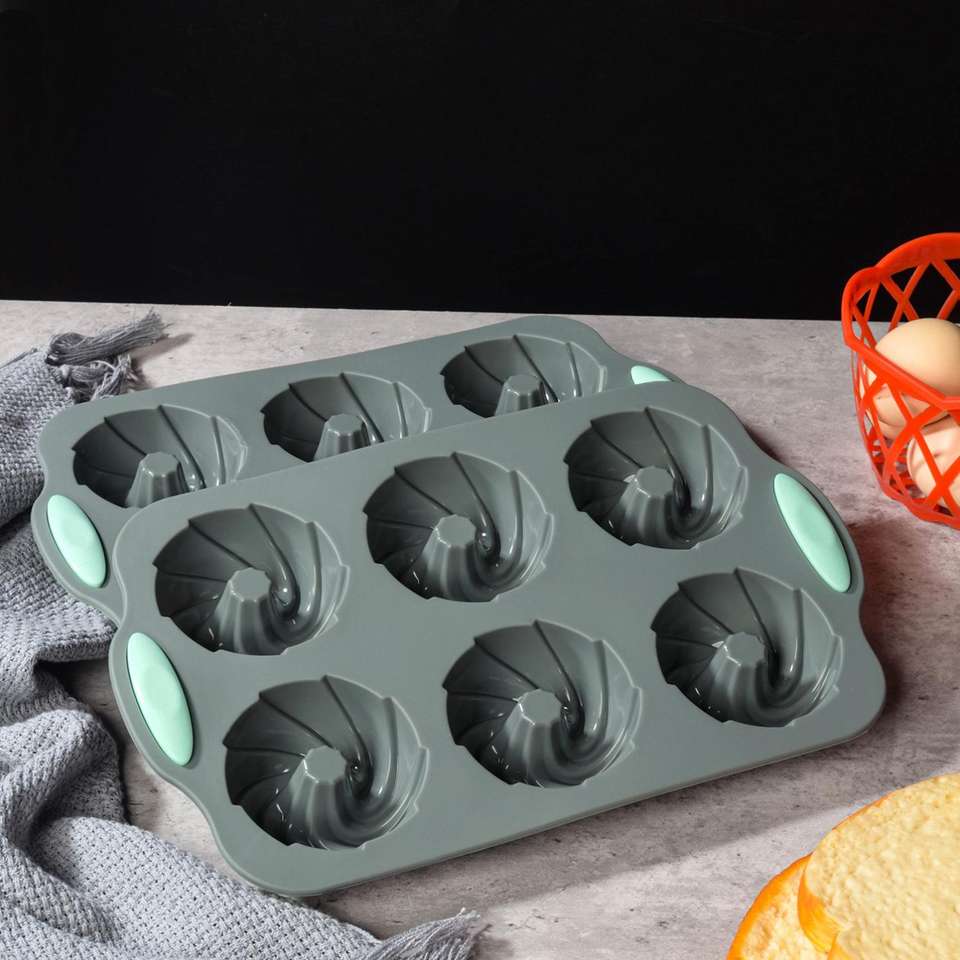 Gray six-piece spiral pattern silicone muffin plateSpecifications