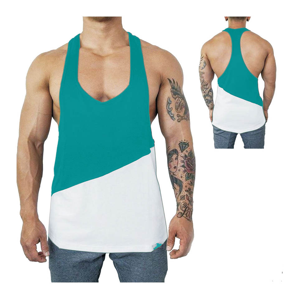 Débardeur de sport respirant à panneau bicolore pour le travail et le fitness Débardeur avec logo personnalisé Débardeur de sport à la mode pour les hommes de grande taille