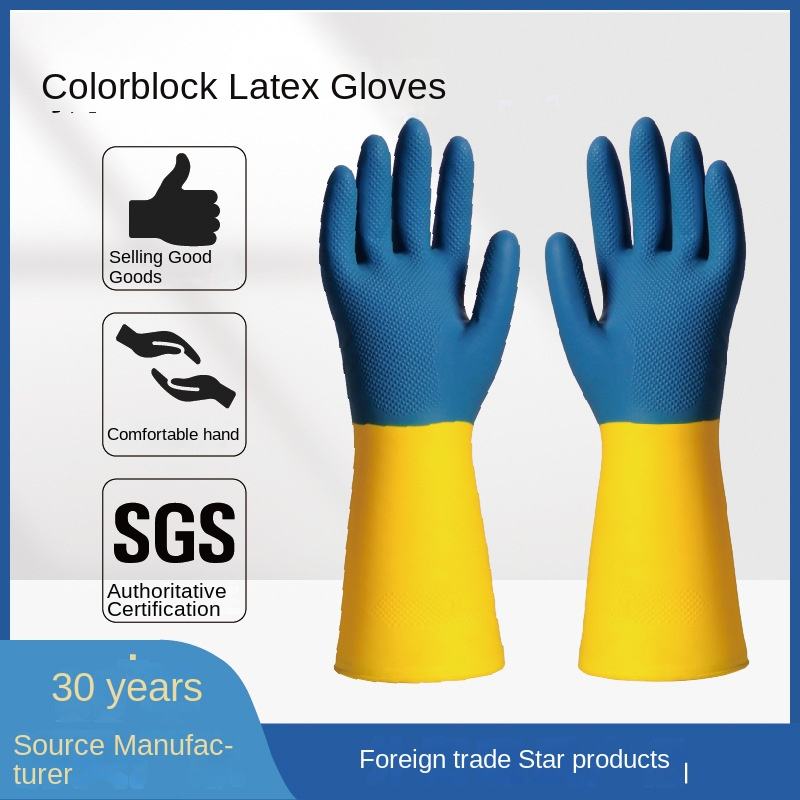 Gants en caoutchouc de nettoyage domestique bicolores pour femmes Taille XL Revêtement en latex Anti-coupure Vente directe en usine Cuisine Utilisation des toilettes