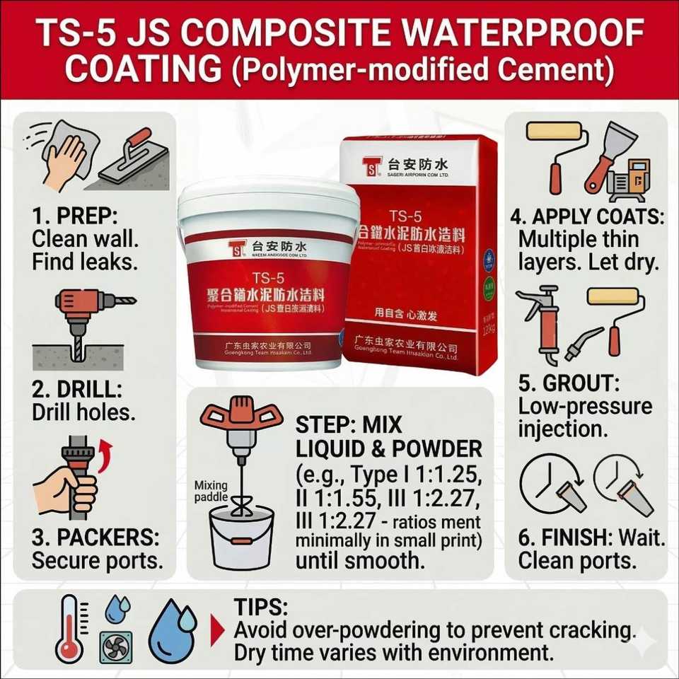 Revêtement imperméable composite JS à deux composants, peinture imperméable à base de polymère et de ciment