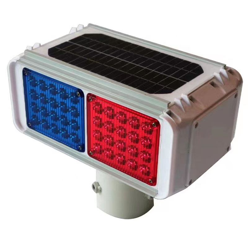 Deux groupes de feux de circulation solaires LED à double face rouge et bleu alternés avec protection IP54 et fonctionnement 24h/24