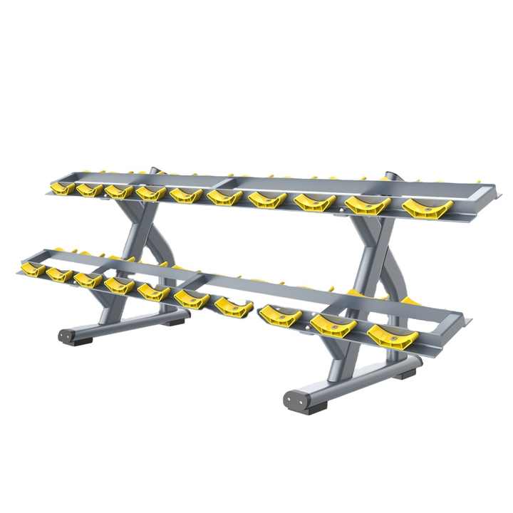 Support à haltères à deux niveaux en acier de qualité commerciale pour salle de sport, rangement organisé pour plusieurs paires d'haltères
