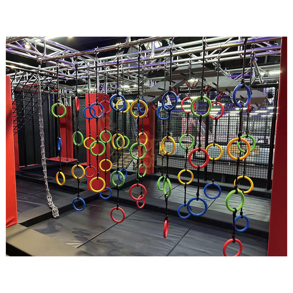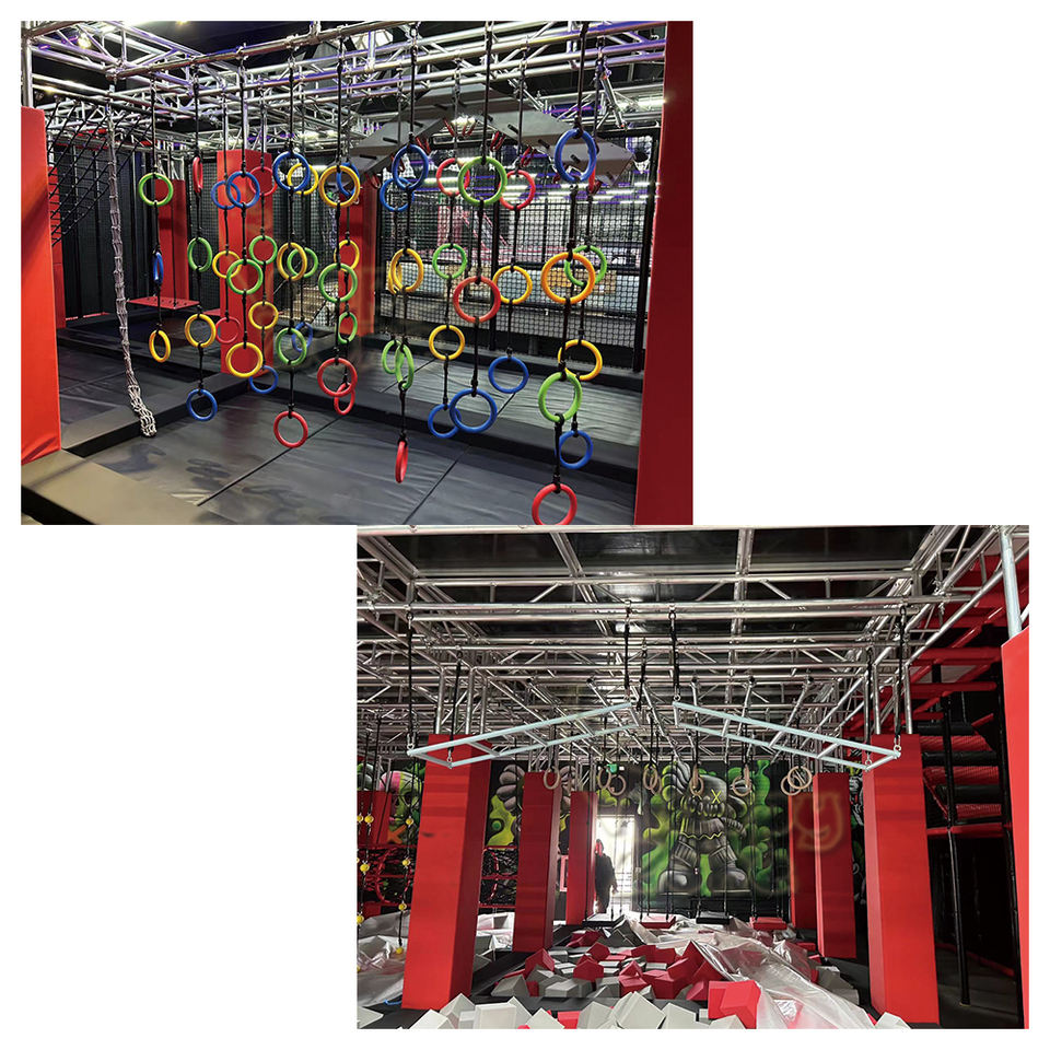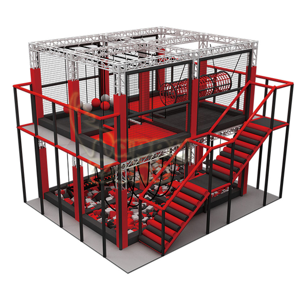 Terrain de jeu intérieur en mousse d'aventure à deux niveaux Ninja Warrior Obstacle Course Trampoline Gym Trampoline Park Equipment