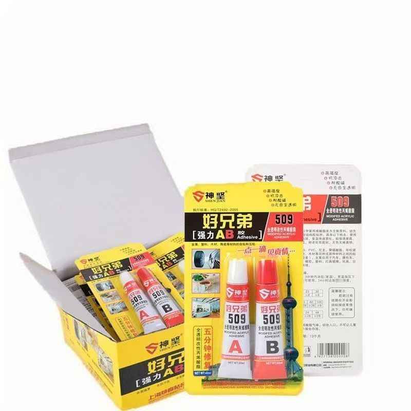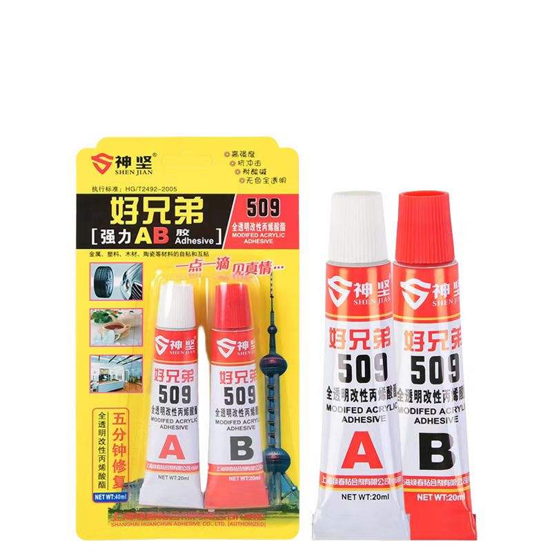 Deux paquets d'adhésifs en résine acrylique modifiée à forte viscosité AB Glue pour le travail du bois pour l'usine d'applications mécaniques Utomobiles