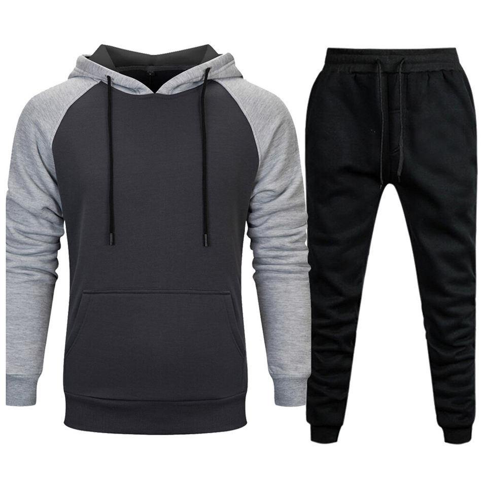 Deux pièces survêtement à capuche pour hommes 100% coton Sport Jogging ensemble veste confortable pantalons de survêtement équipe survêtement pour la saison d'automne