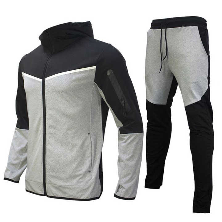 Ensemble de survêtement pour homme en deux pièces, à capuche, uni, coupe-vent, respirant, pour le sport, jogging, avec logo imprimé, veste d'équipe, survêtement pour l'automne