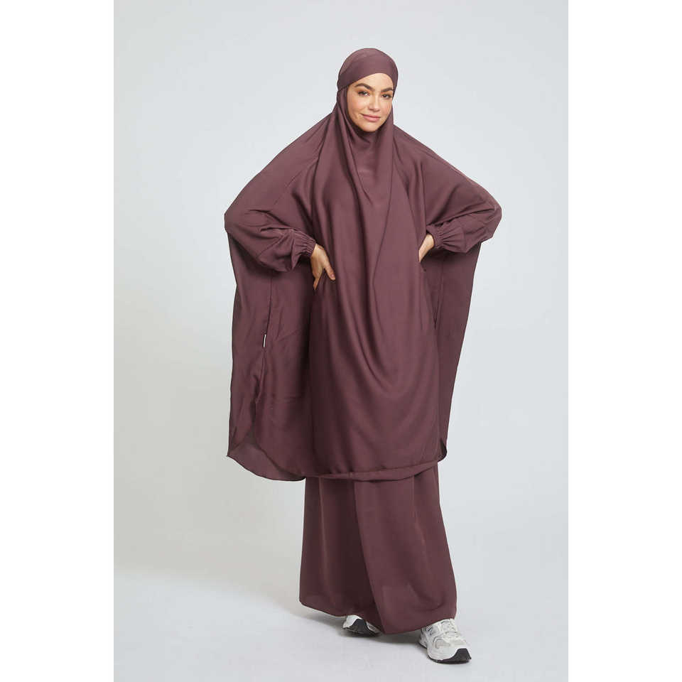 Ensemble de prière deux pièces modeste pour jilbab mûrier sauvage avec manchette élastique