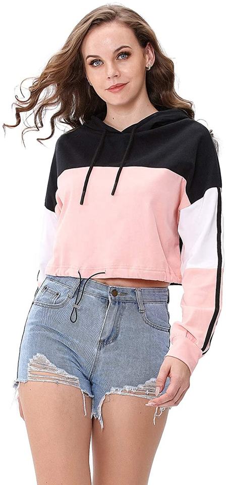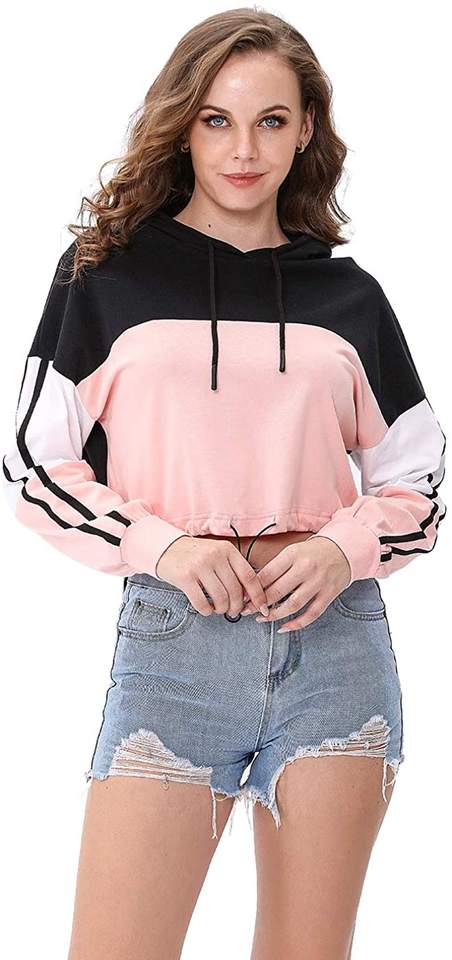 Crop top running ensemble ensemble Manches Longues % 100 coton MINCE À Manches Longues CropTop plussize à capuche femmes crop top Pas Cher prix