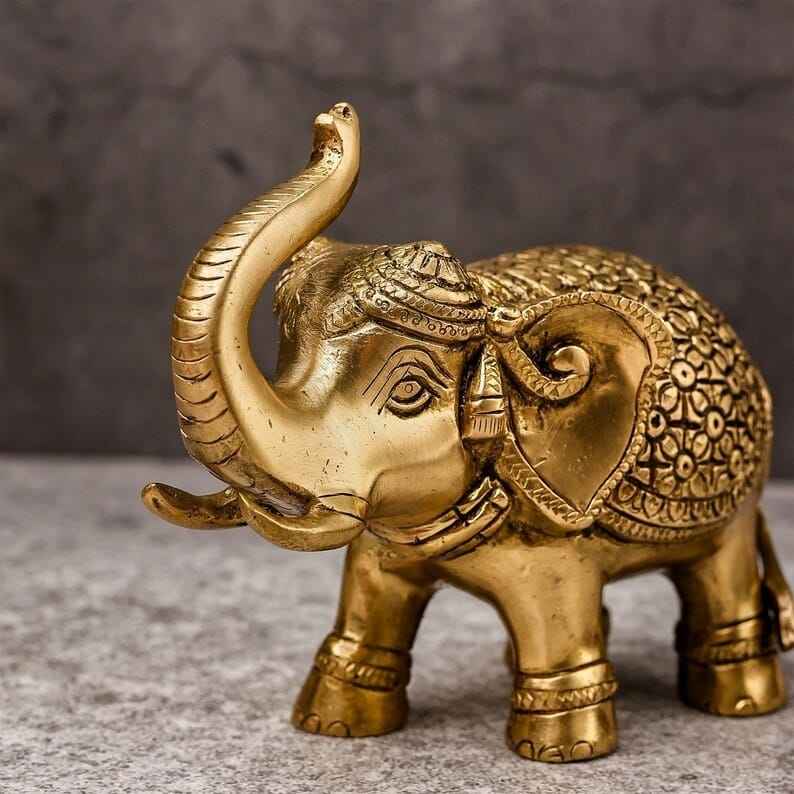 Ensemble de deux pièces Statue d'éléphant traditionnelle pièce maîtresse en laiton pur Design attrayant décoration murale pour la maison qualité d'exportation exquise