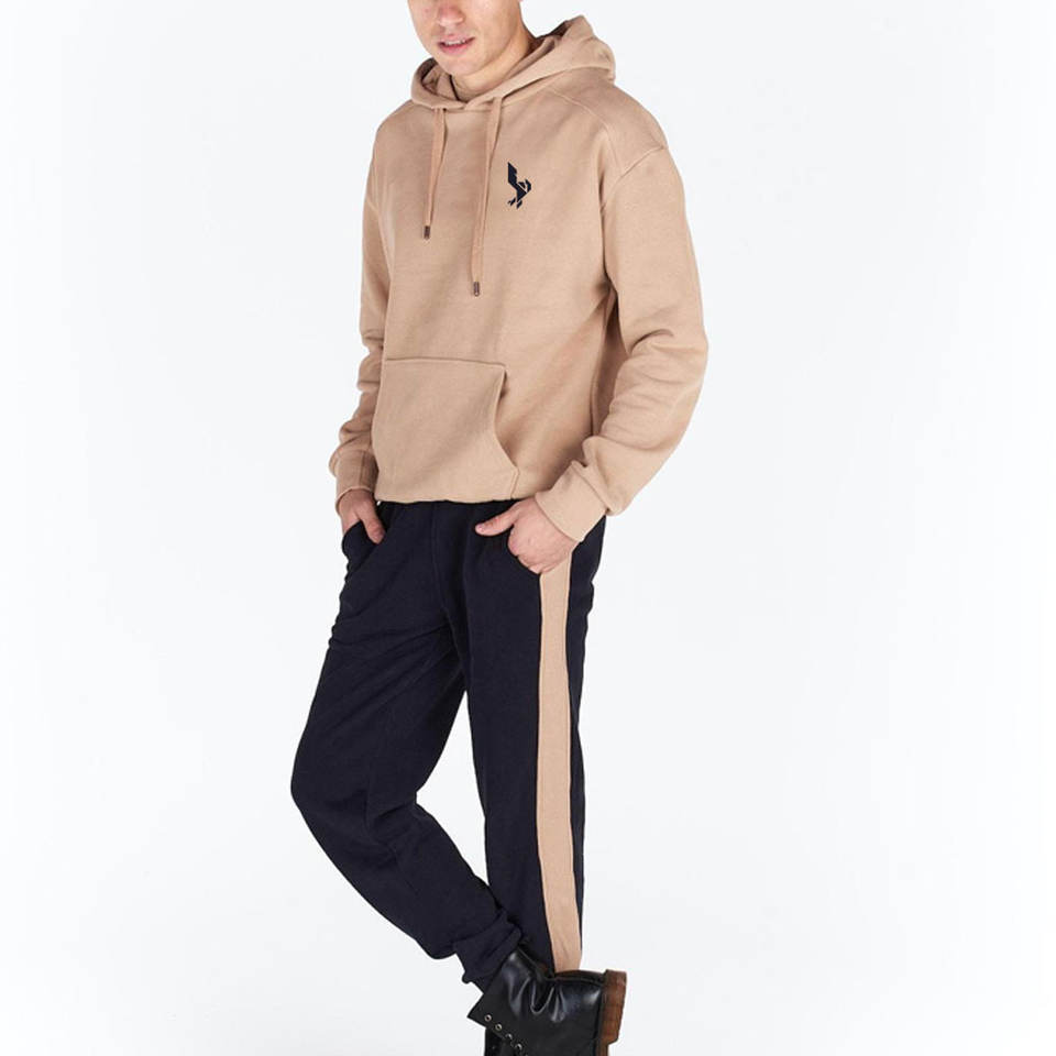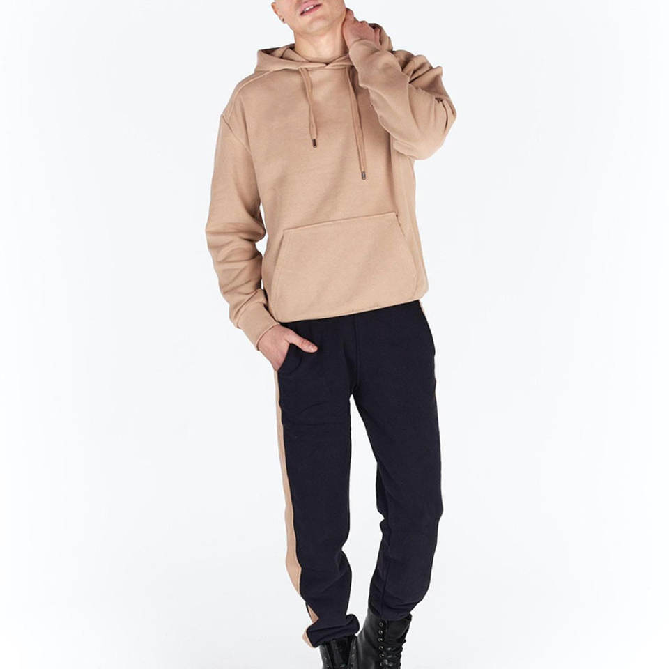Survêtement d'hiver en coton solide à capuche deux pièces pour hommes avec poignets côtelés taille réglable