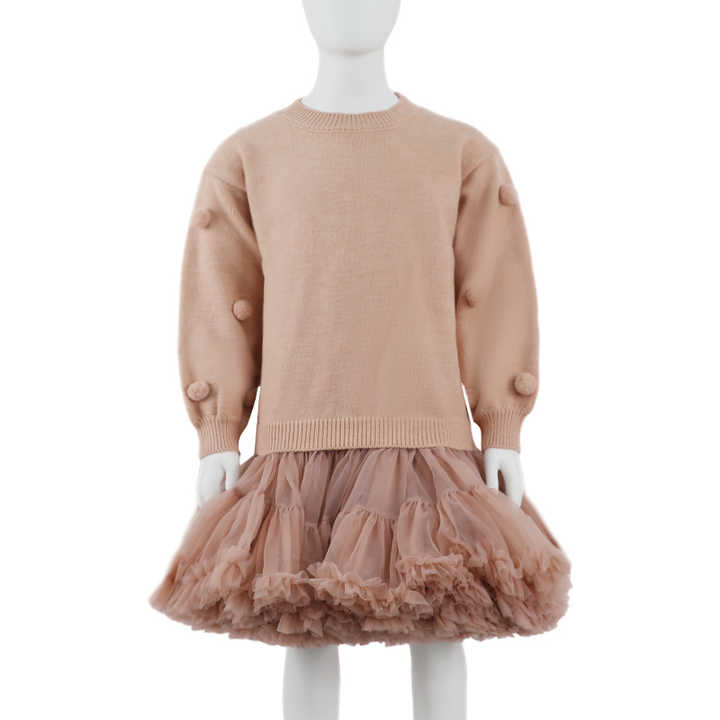 Two Pieces Long Sleeve Soft Knitting Pullover Sweater With Tutu Skirt Toddler Girl Winter Clothing Sets
