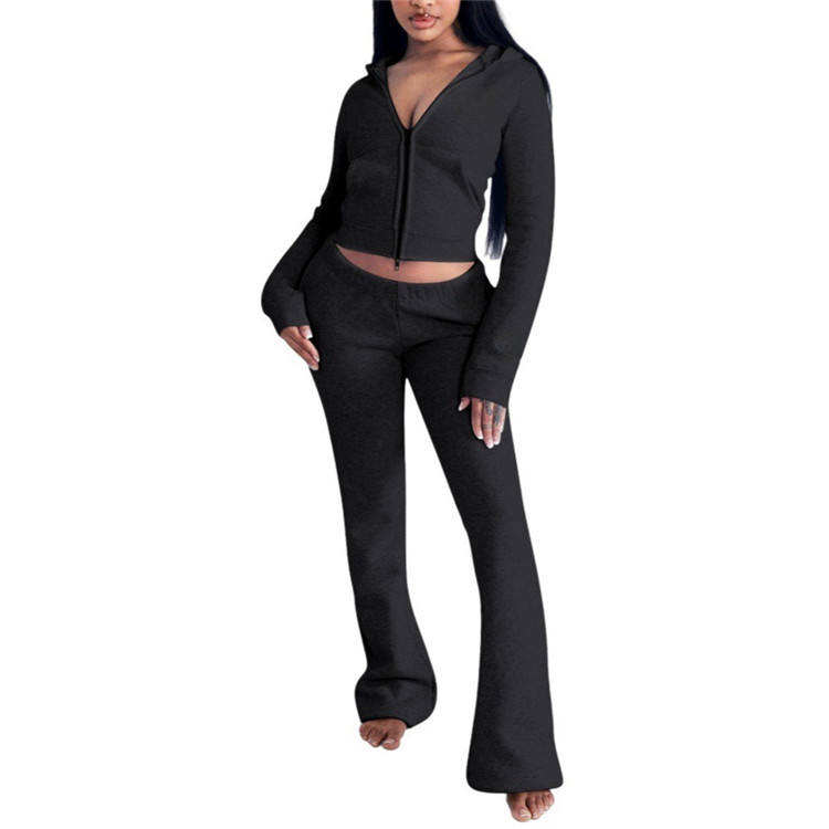 Costumes deux pièces chauds couleur unie ensemble femmes automne hiver vêtements ensembles col montant fermeture éclair sweat pantalon