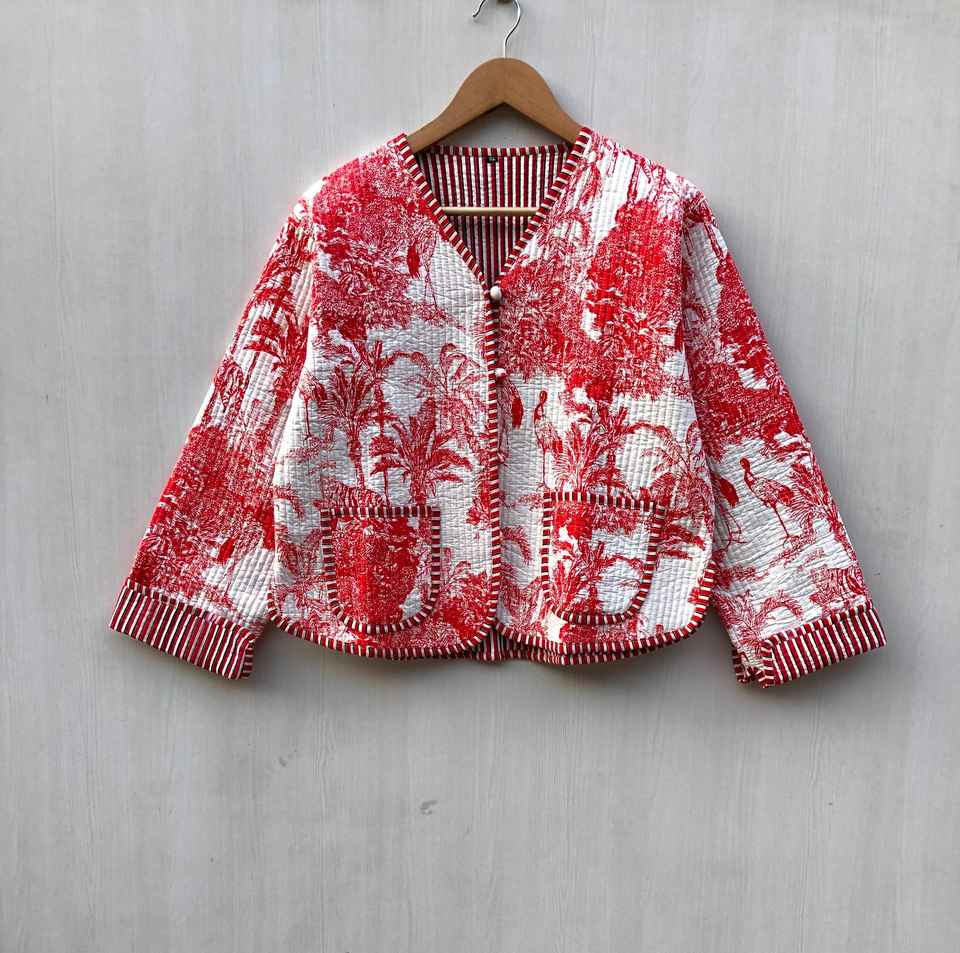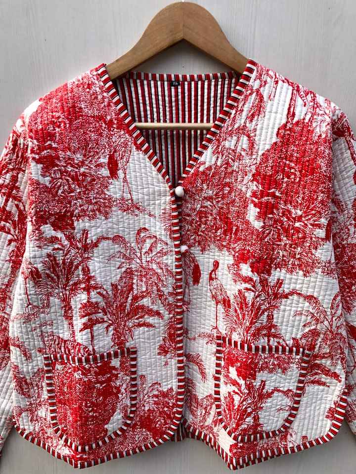 Vestes à deux poches avec fermeture boutonnée, imprimé jungle, veste matelassée pour femmes, style bohème imprimé à la main, cadeaux de vacances