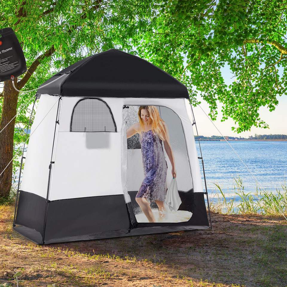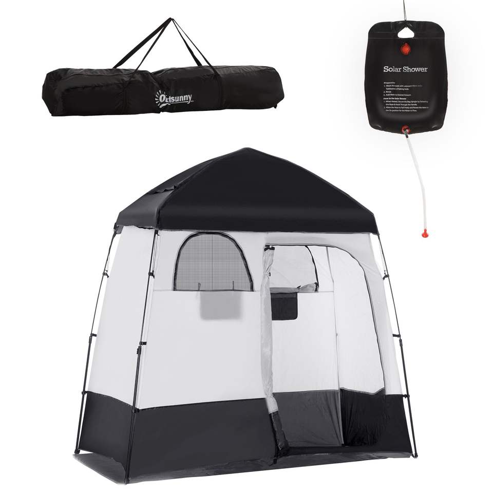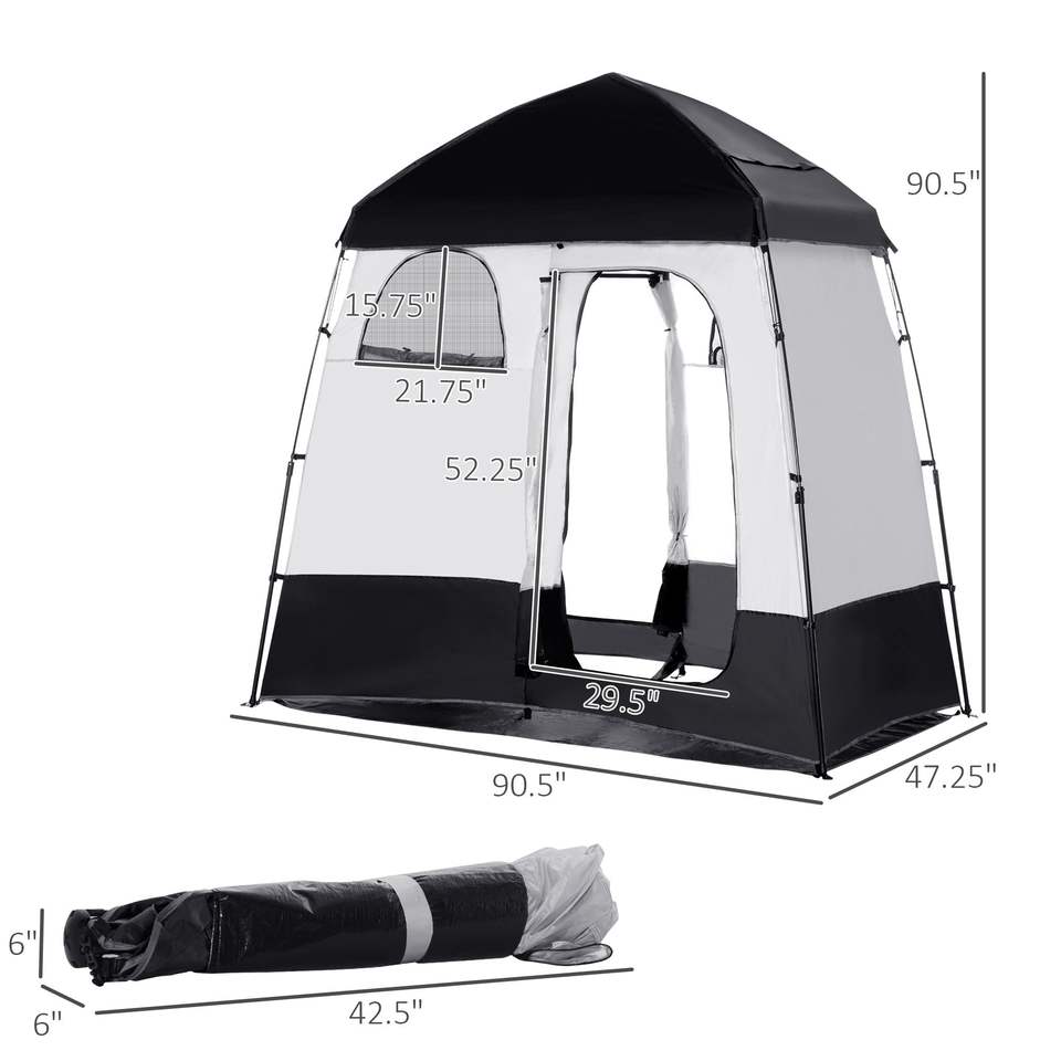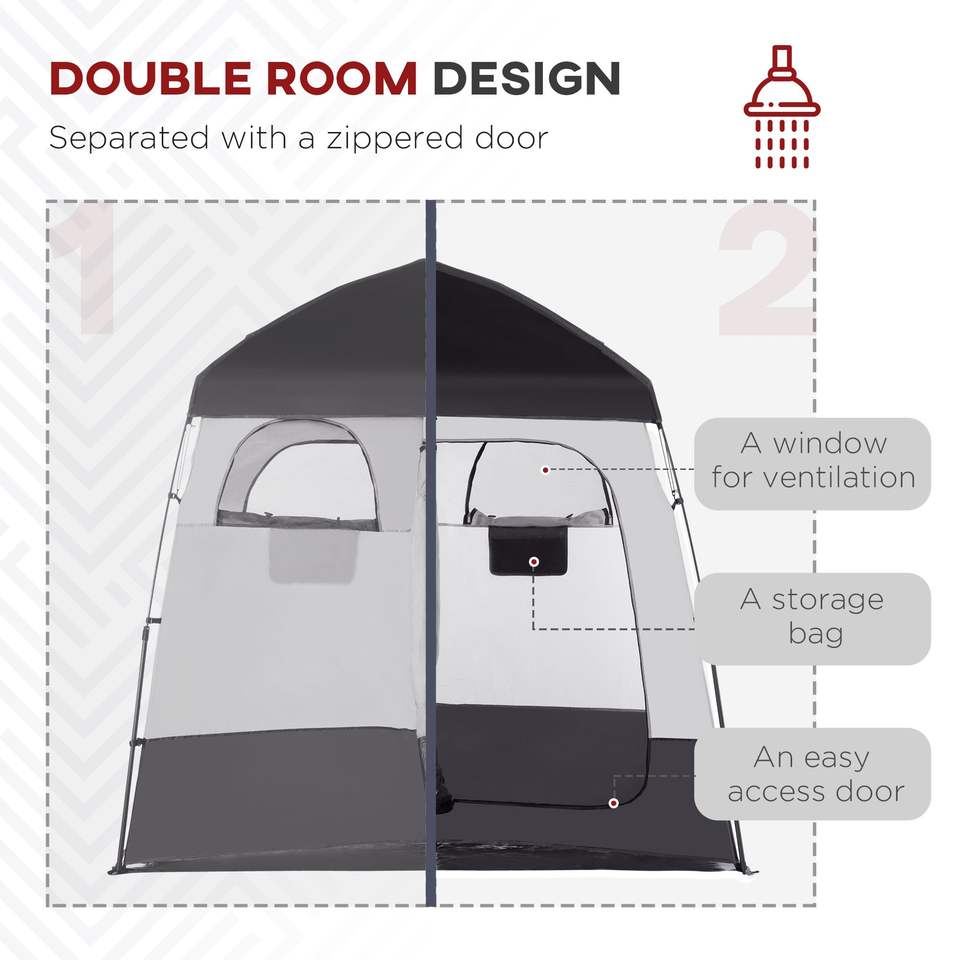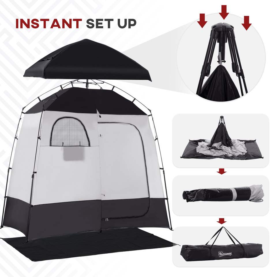 Abri d'intimité portable à deux pièces, cabine de douche instantanée avec sac de transport pour 2 personnes, disponible en noir