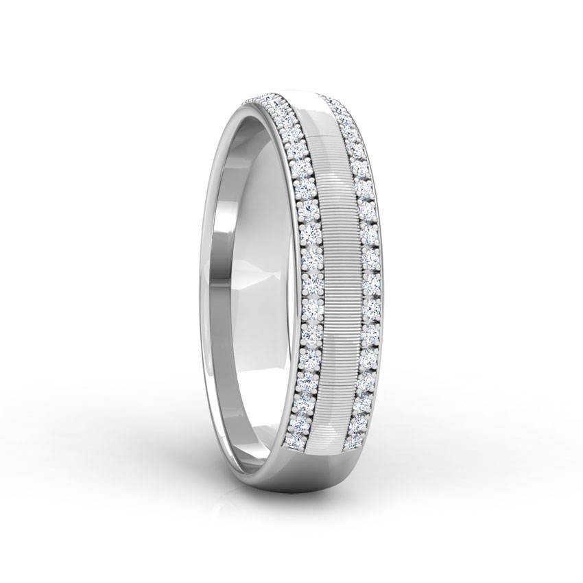 Bague de fiançailles en or blanc 14 carats à deux rangées Moissanite VVS à coupe brillante texturée de haute qualité pour anniversaire de fête cadeau