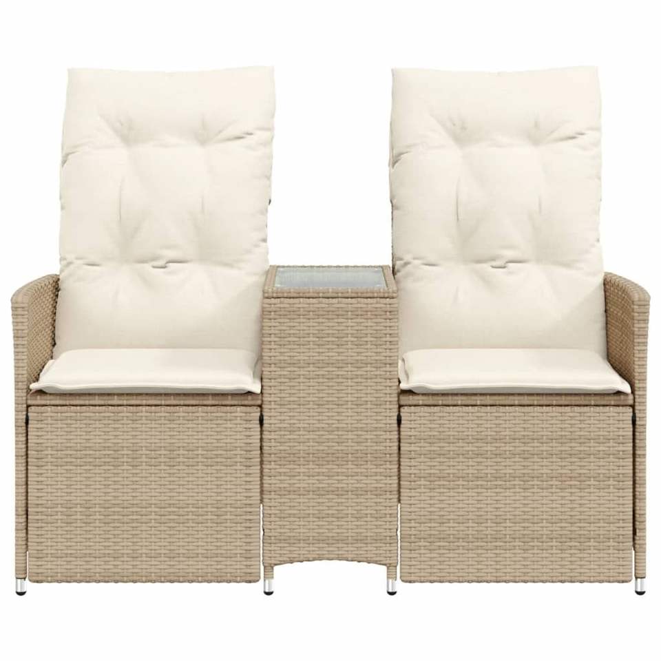 Canapé de jardin inclinable en rotin PE beige deux places, assise extérieure confortable