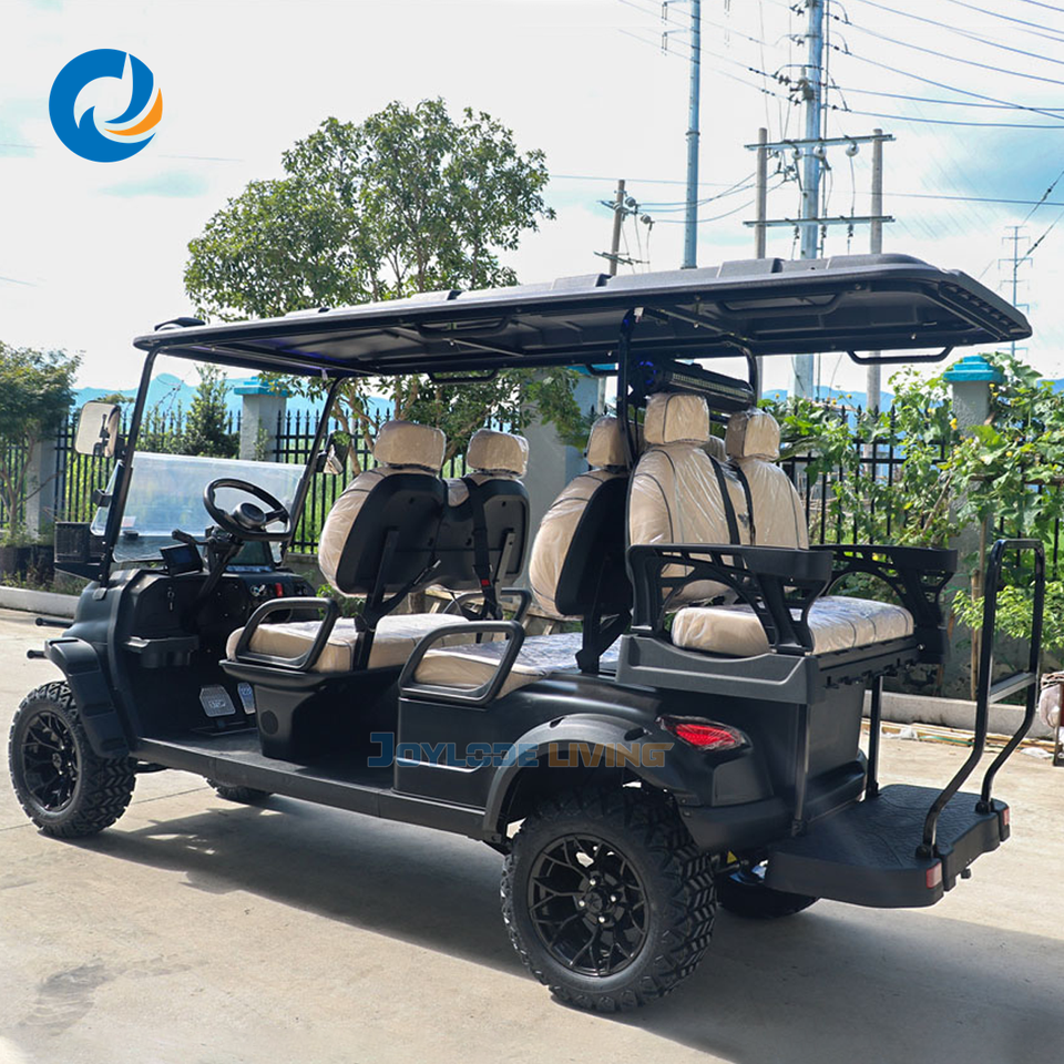 Voiture de golf électrique à batterie au lithium deux places avec réfrigérateur et pneus tout-terrain