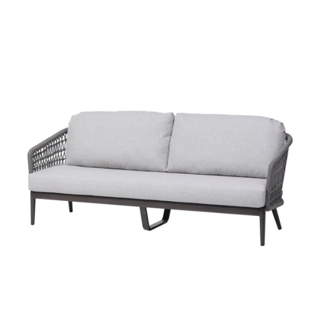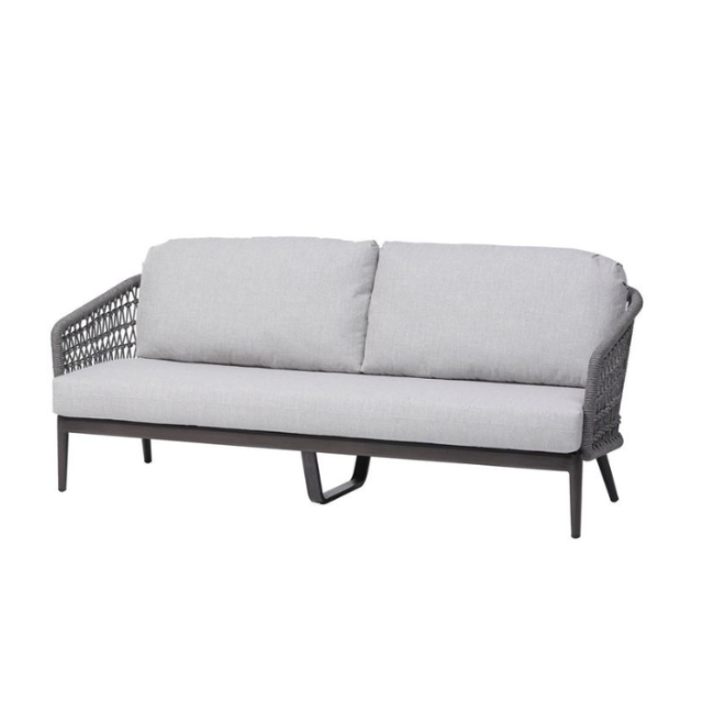 Canapé 3 places en rotin PE pour patio extérieur gris foncé avec accoudoirs larges Canapé en osier pour jardin avec coussins