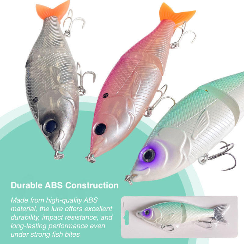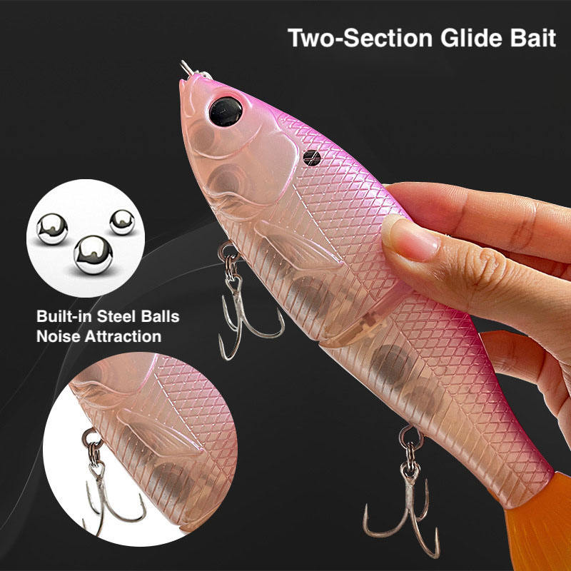 Leurre de pêche à la traîne à deux sections, gros swimbait, 19 cm, 89,5 g, swimbait articulé coulant, queue souple, billes en acier pour gros poissons prédateurs