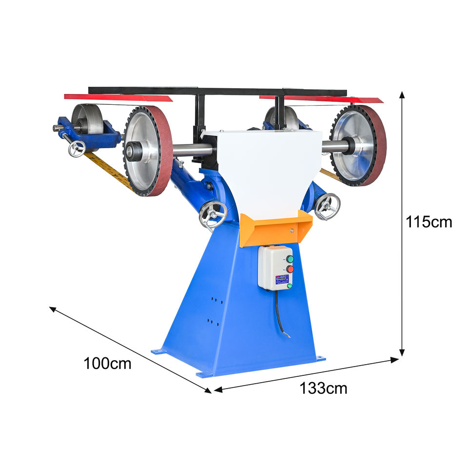 Machine de ponçage et de polissage à deux postes, électrique, pour le finissage des surfaces en métal, acier inoxydable et aluminium