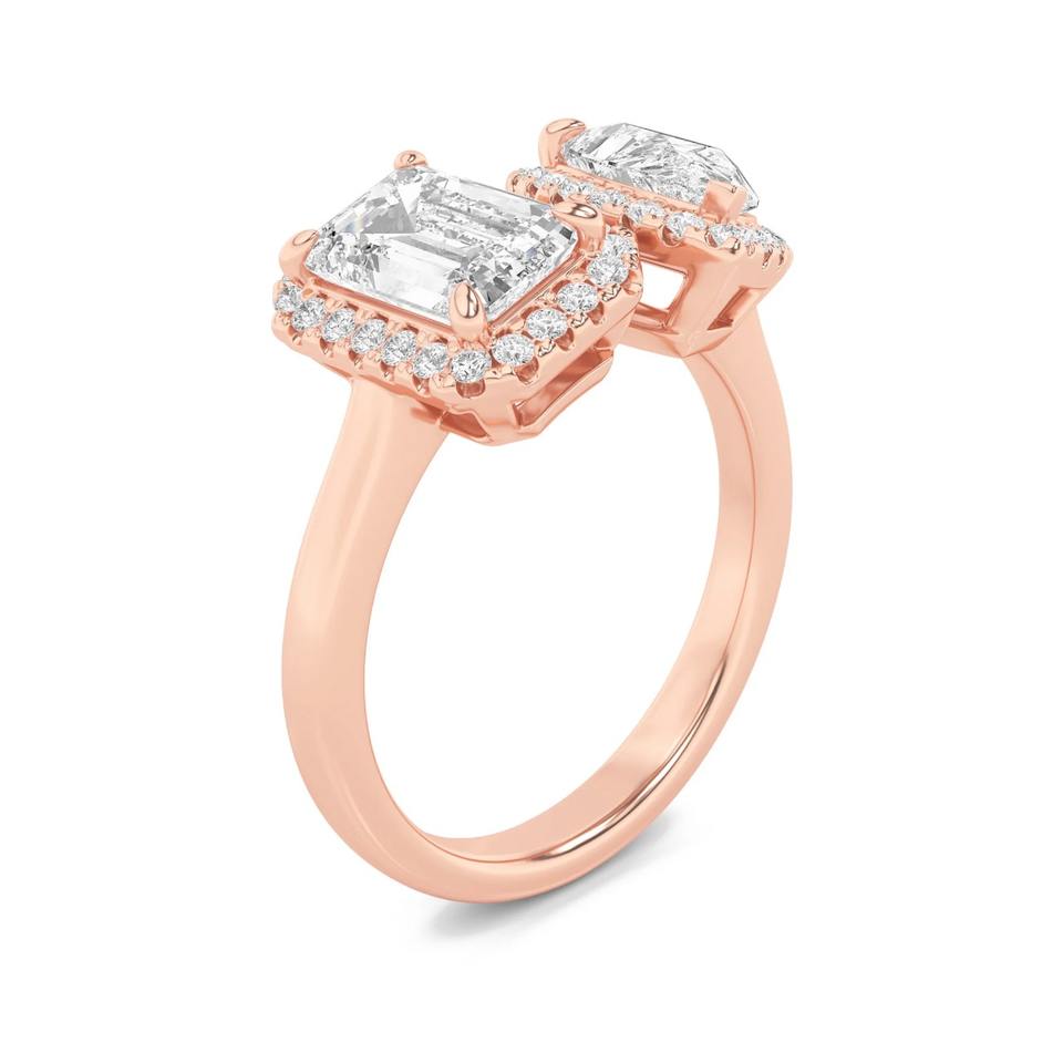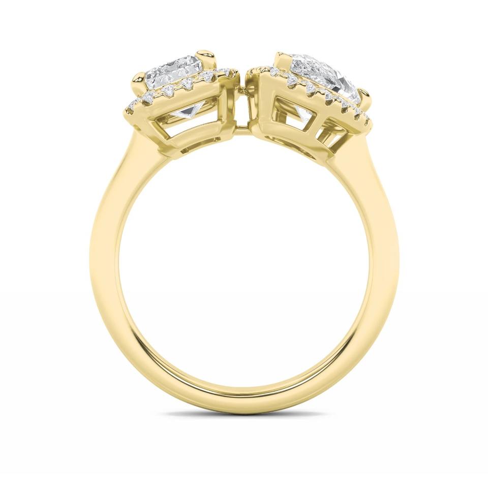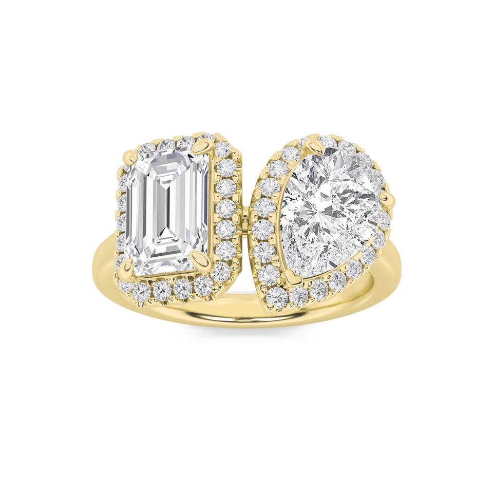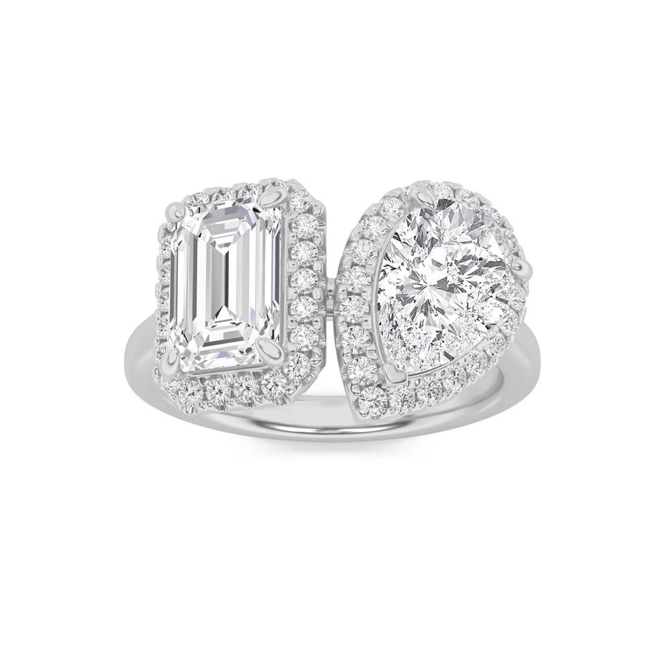 Product name:Two Stone Emerald and Pear Cut Lab Grown Diamond Halo Toi Et Moi Ring