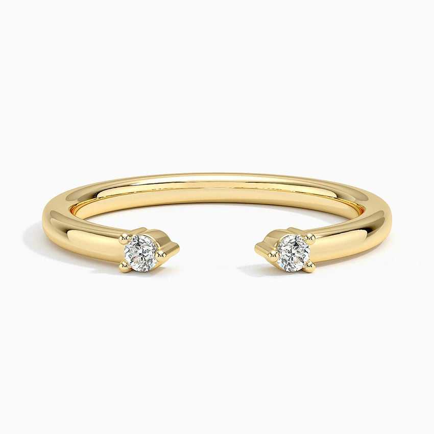 Ensemble de deux pierres rondes brillantes taillées en diamant cultivé en laboratoire en or véritable massif 14k diamant bijoux fins Double pierre bague ouverte