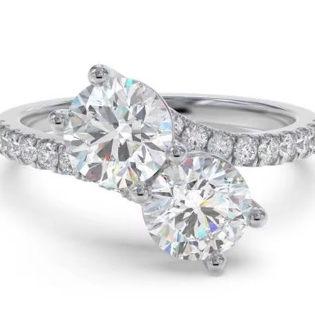 Conception: Bague d'épaule en diamant rond à deux pierres