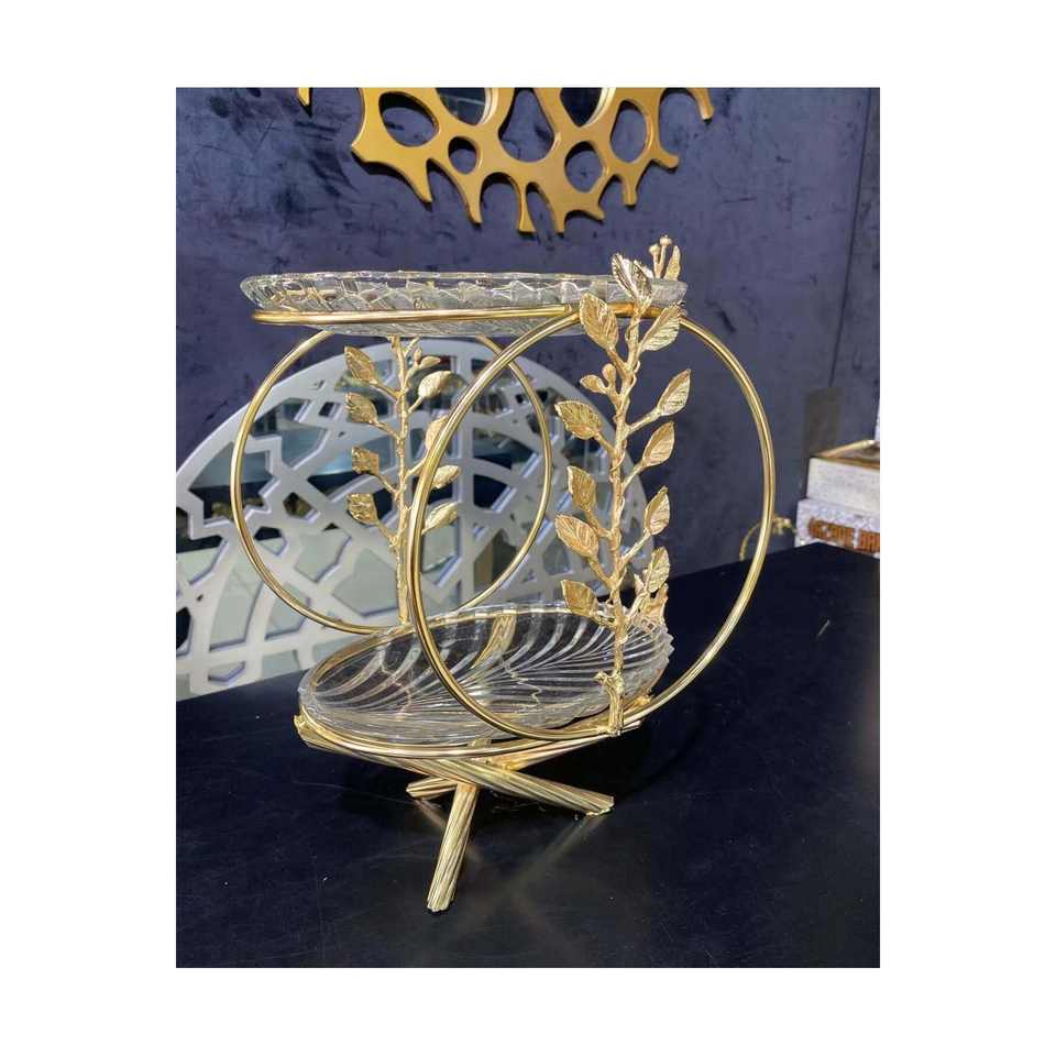Armoire de présentation Cam Food-Safe à deux étages avec des plateaux de service en forme de feuille de laiton doré fabriqués en TR