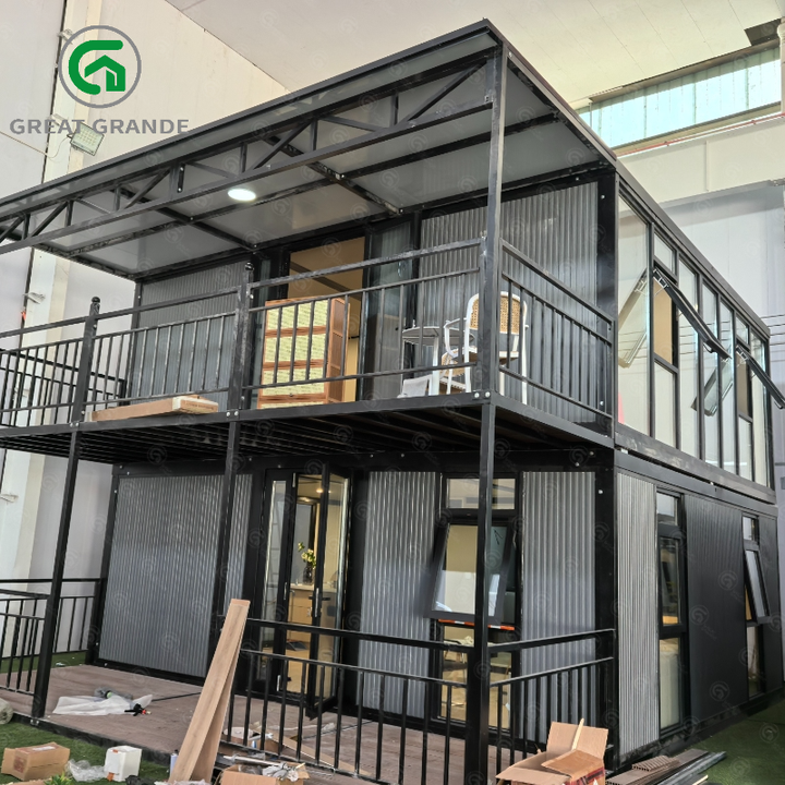 Bureau en conteneur à deux étages Maisons préfabriquées Restaurant Maison de luxe 20 pieds Maison à double pont Plegable Coffee Shop Escalier intégré
