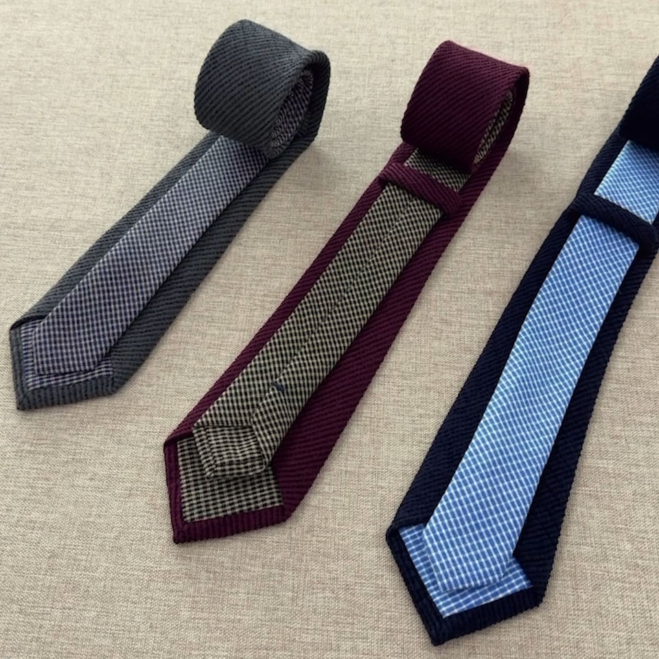 Cravate à deux textures pour hommes Plaine avec damier Solide Repp Texture Coton Lin Marron Vin Vert Marine Blanc Noir Kaki Beige Cravate