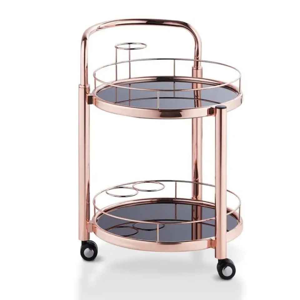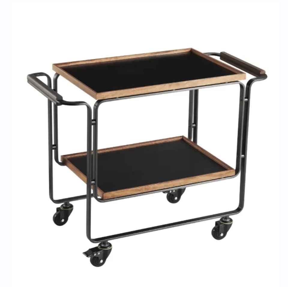 Two‑Tier Bar Cart with Metal Frame Wooden Shelves Wine Rack Hanging Glass Holder Mobile Serving Trolley Modern Functional