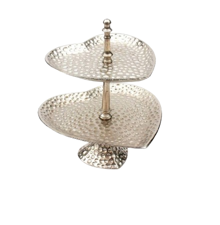 Support à gâteau en métal martelé en forme de cœur à deux niveaux Décoration Délicieux dessert Fête du thé Pâtisserie Support à cupcakes