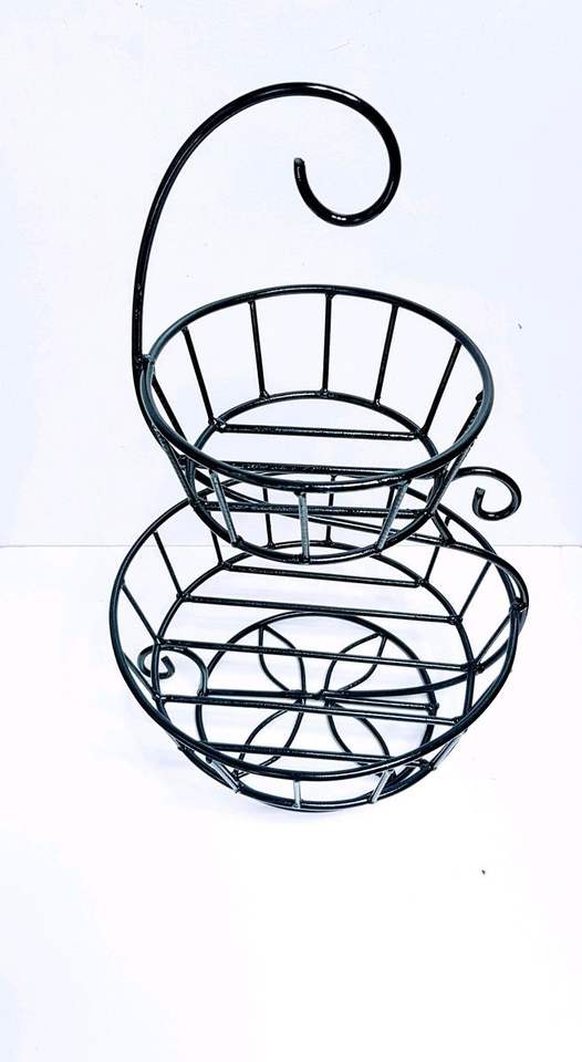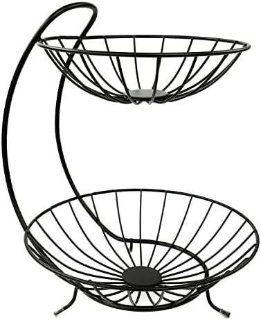 Panier de rangement pour fruits à deux niveaux, écologique, multifonctionnel, moderne, élégant, décoratif, en métal avec revêtement en poudre, pour la cuisine