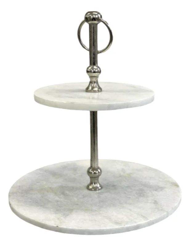 Support à gâteau en marbre à deux niveaux pour la présentation de gâteaux de mariage et la décoration de table de desserts pour les événements de fêtes d'anniversaire