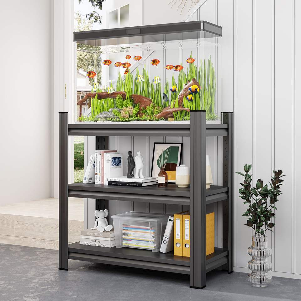 Étagère de rangement métallique à deux niveaux pour aquariums de 5 à 10 gallons, support à trois niveaux pour petits reptiles, idéal pour les bureaux à domicile, 19,70 po L X