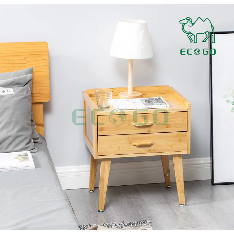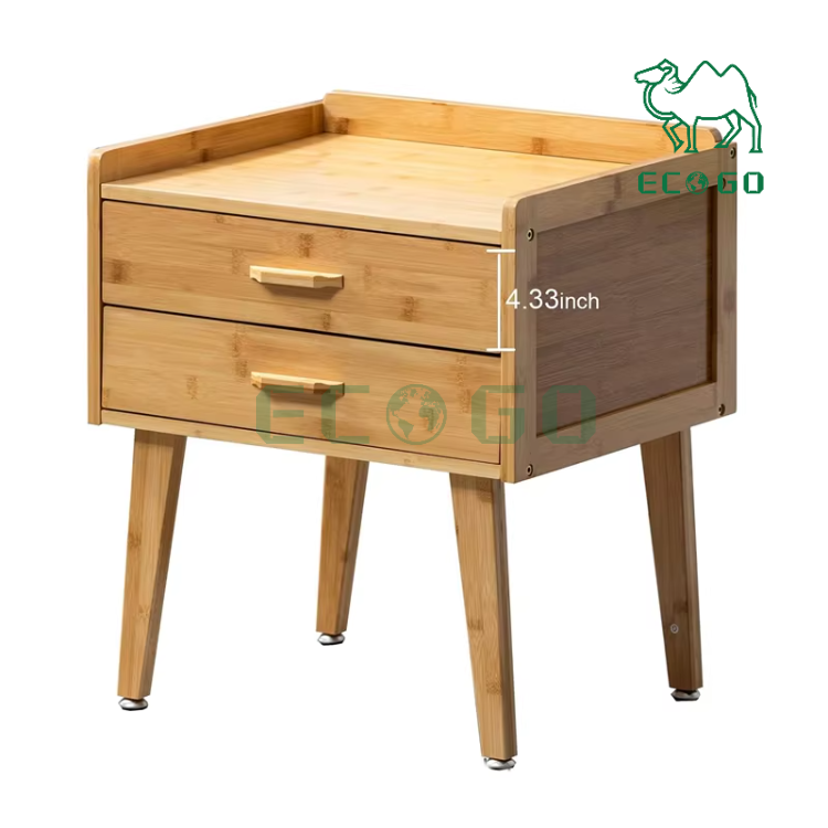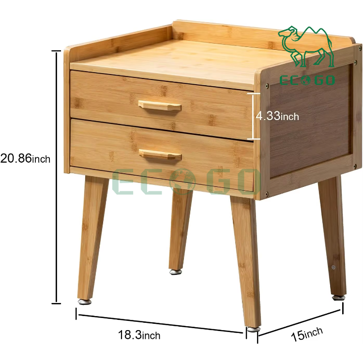 Table de chevet à deux niveaux Table d'appoint en bambou pour chambre à coucher Table d'appoint en bambou avec tiroir pour la maison