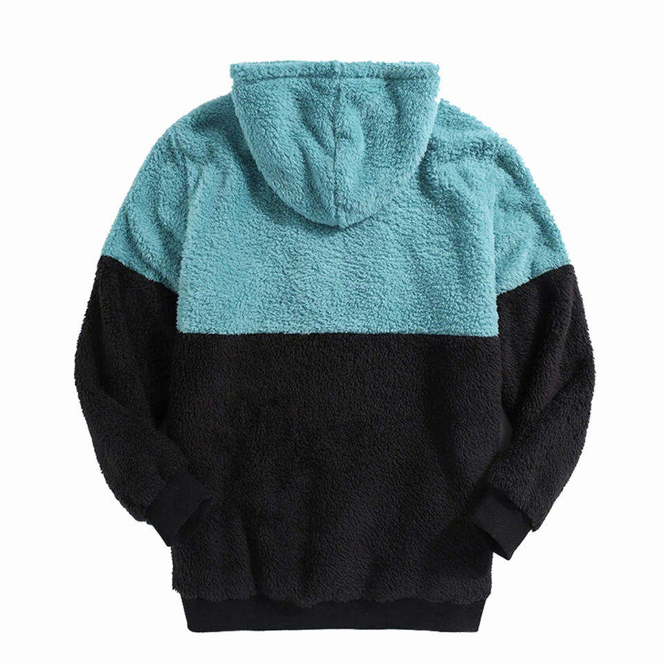 Sweat à capuche en polaire bicolore pour homme Doux et chaud Couleur contrastée Pull en sherpa Hiver Décontracté Confortable Streetwear