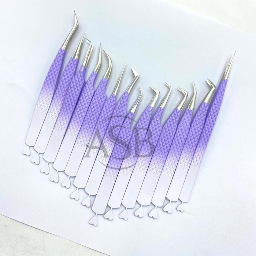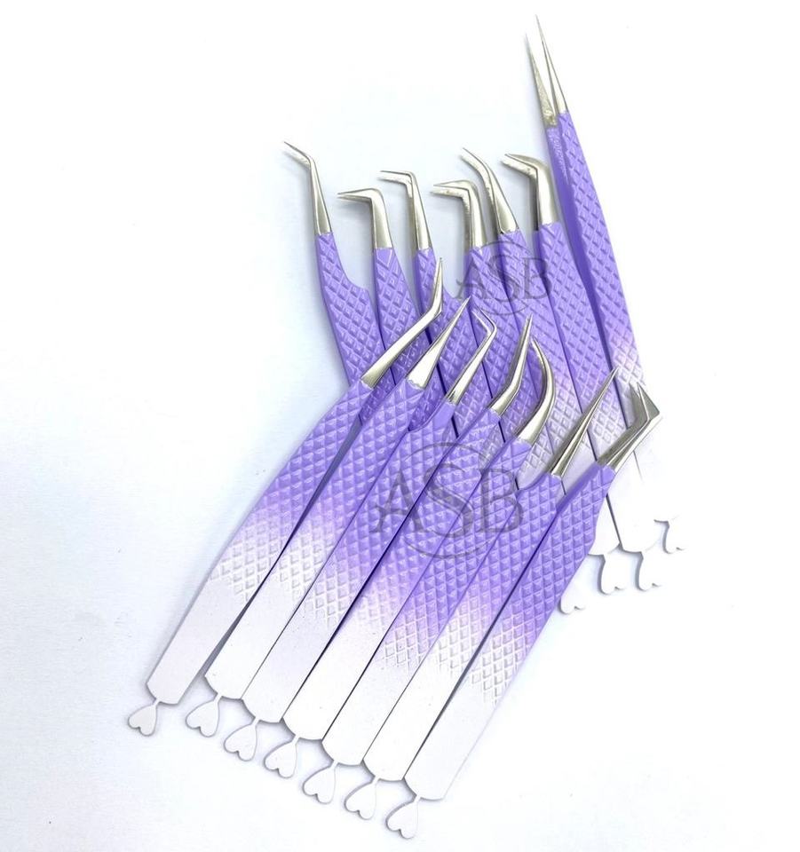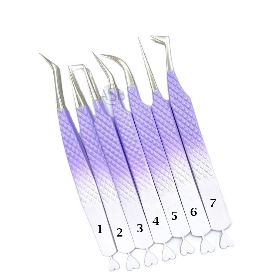 Pince à cils bicolore Ombre violet blanc enduit de poudre personnalisable marque privée acier inoxydable japonais durable pointu