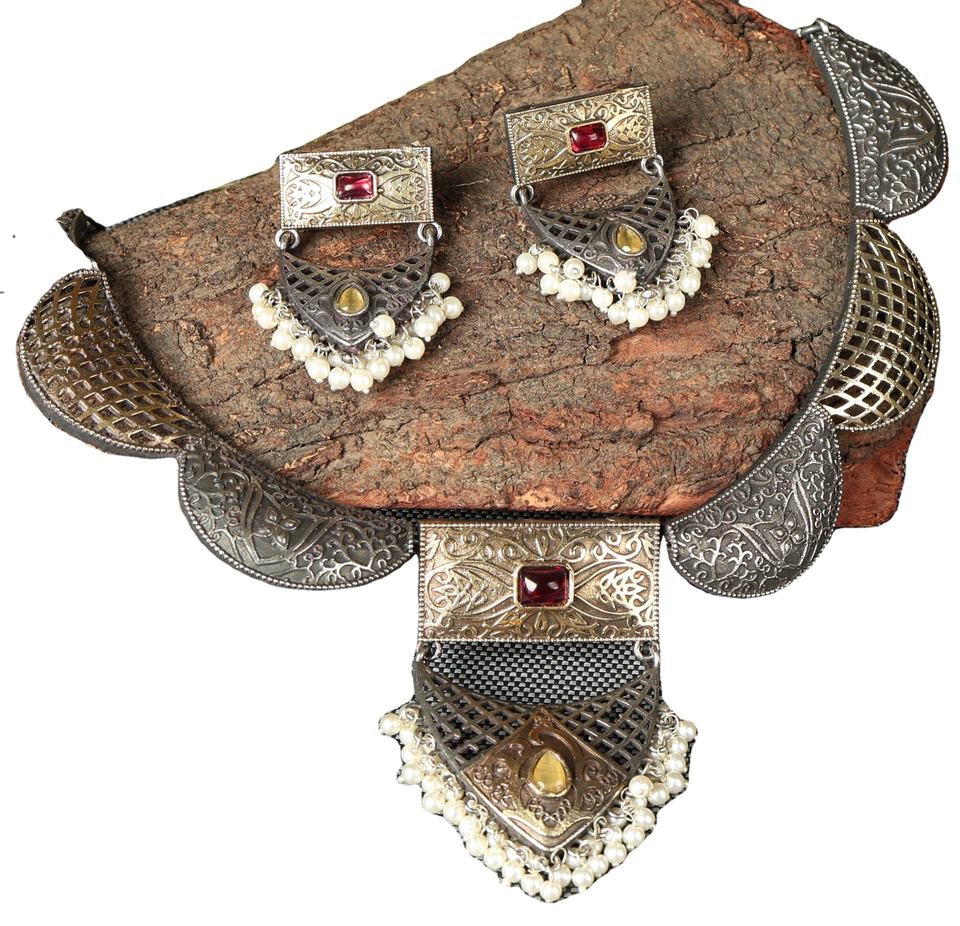 tow tone red stone tribal choker jewelry set