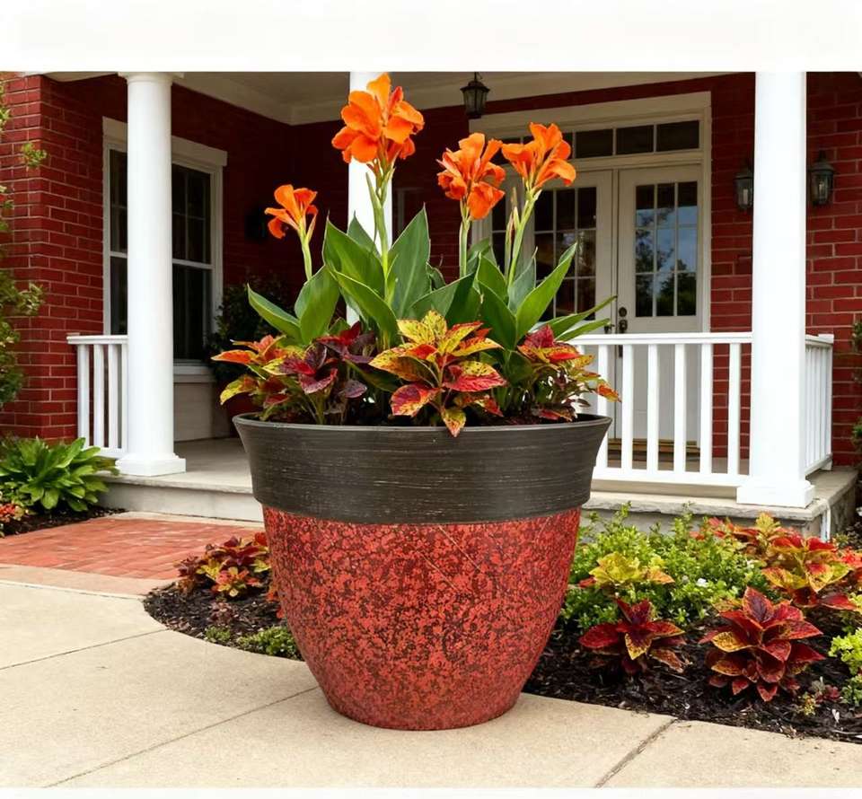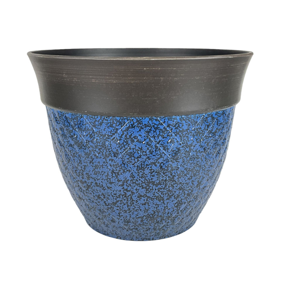 Pot de fleurs en plastique PP bicolore, corps rouge moucheté, bordure bronze foncé brossé, rond, pour la maison et le jardin