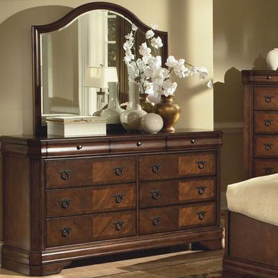 Commode de chambre à coucher à deux tons, meuble de rangement élégant et traditionnel, commode classique en bois foncé avec miroir