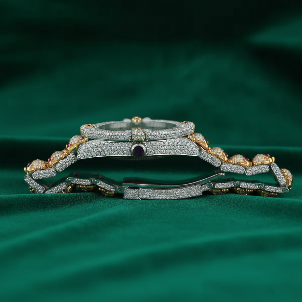 Dispositif:Date automatique, Chronographe, Jour/date, Résistant à l'eau, Lumineux, Diamant