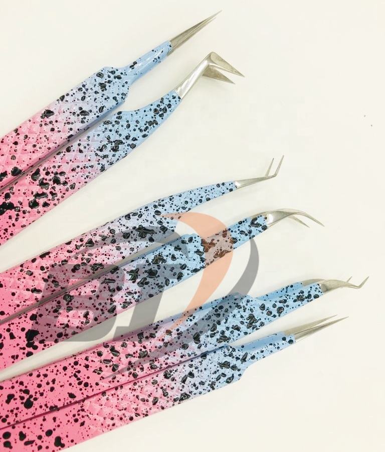 Custom Two-Tone Stainless Steel Eyelash Extension Tweezers Sustainable Powder Coated Diamond Grip for Beauty Fiber Lash