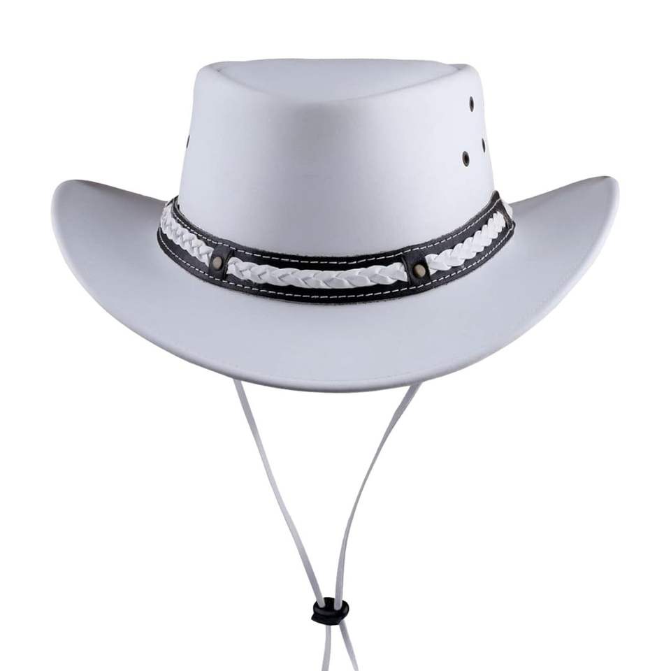 Chapeau de cowboy en cuir bicolore marron et beige, style Cattleman, avec bande en cuir tressé