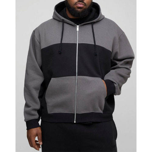 Sweatshirts à capuche et sweatshirts à capuche de coupe ample avec poche kangourou à fermeture éclair bicolore en coton mélangé gris veste à fermeture éclair à logo personnalisé