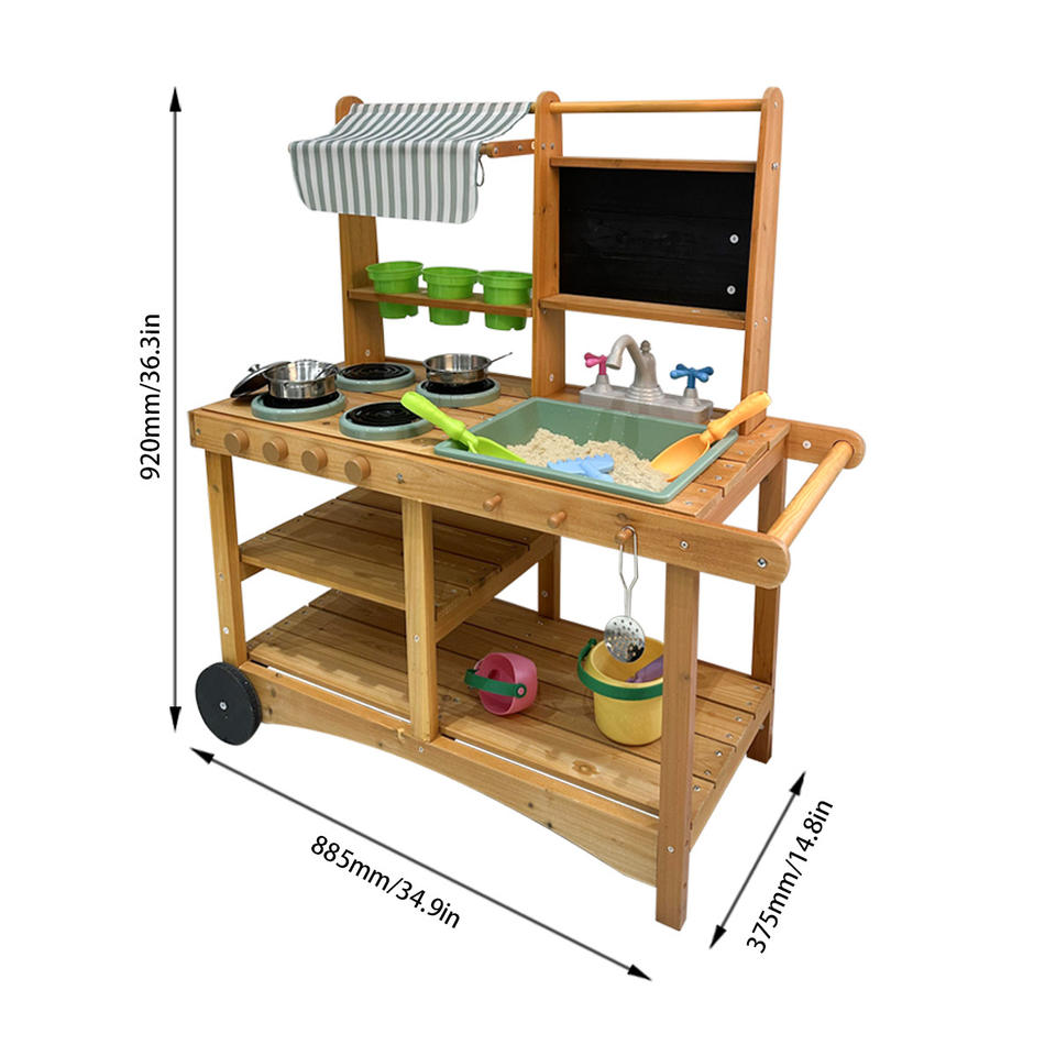 Kiosque de cuisine d'extérieur à deux roues pour enfants, jouet d'imitation fait main, simulation de jeu de rôle 2026