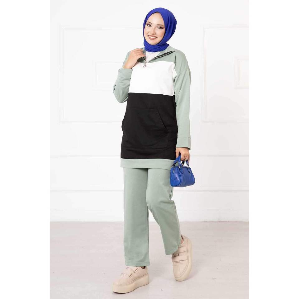 Two-Yarn Garnished Sports Top and Short Set Mint Size XS to 2XL Formal Style Long and Short Length Options Skinny Fit