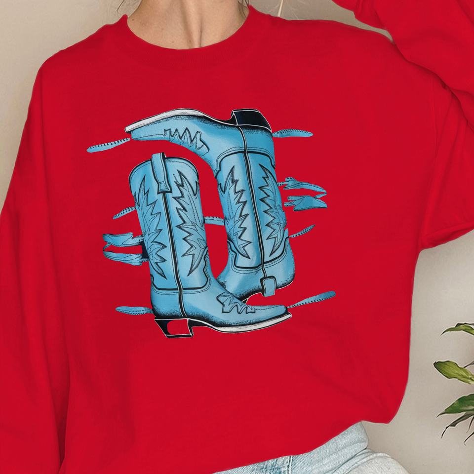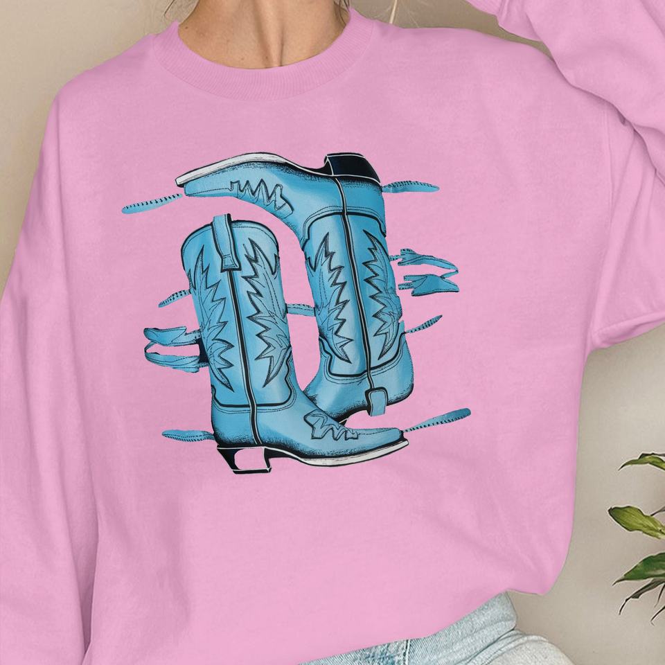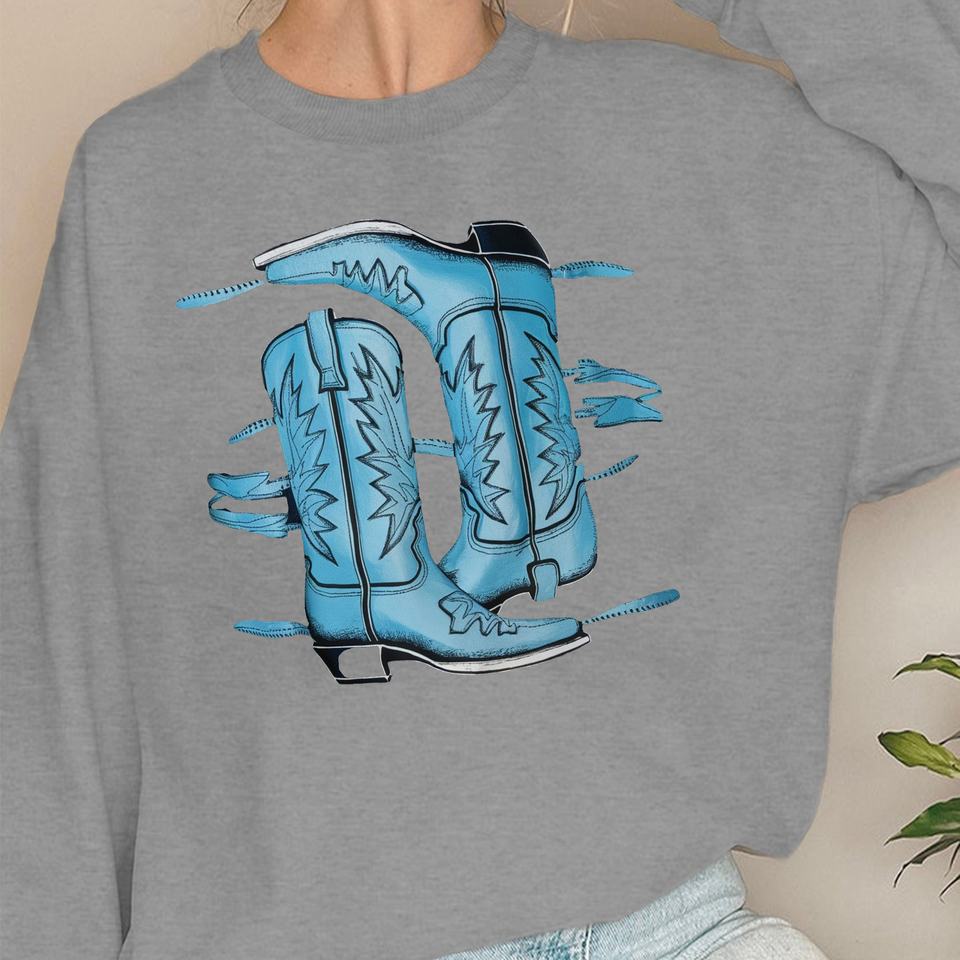 Two blue cowboy boots women's sweatshirts