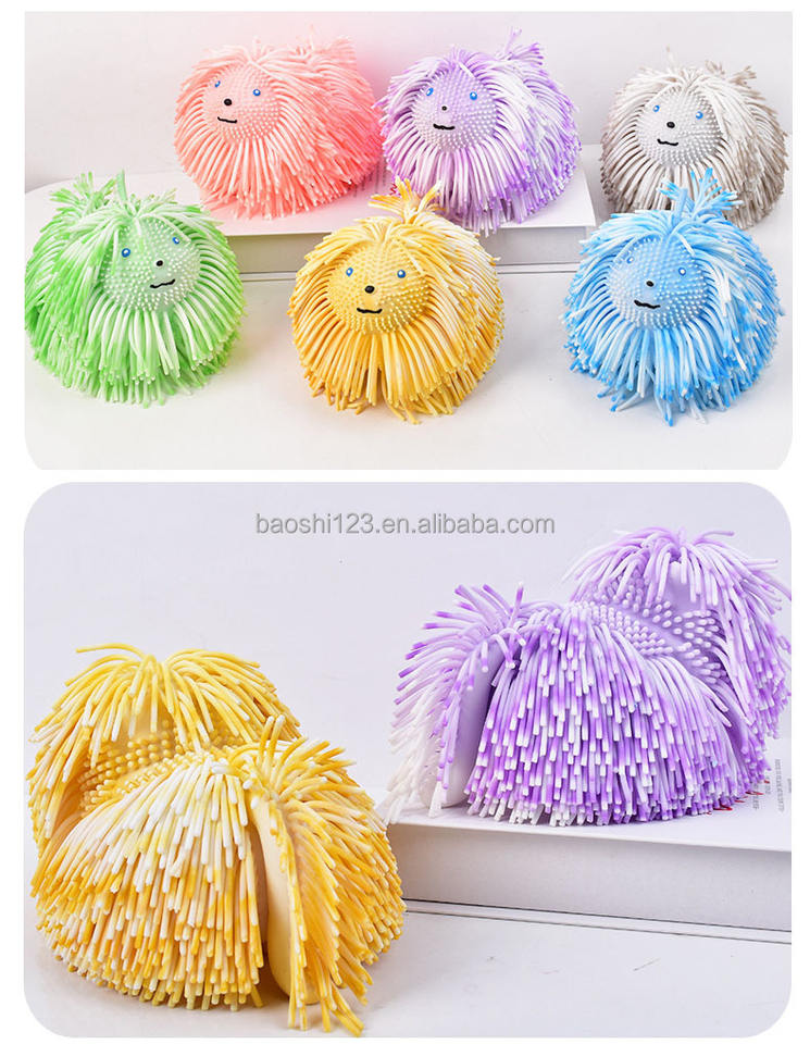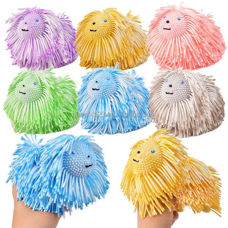 Balle en peluche TPR chat aux poils longs bicolores, jouet anti-stress moelleux en forme d'animal, cadeau pour enfants, décompression au bureau, petit ornement