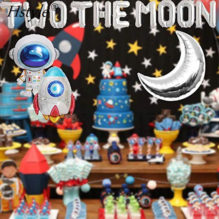 Ballons d'halloween thème espace Man, banderole d'astronaute, décorations pour fête d'anniversaire de bébé 2e anniversaire, ensemble 604